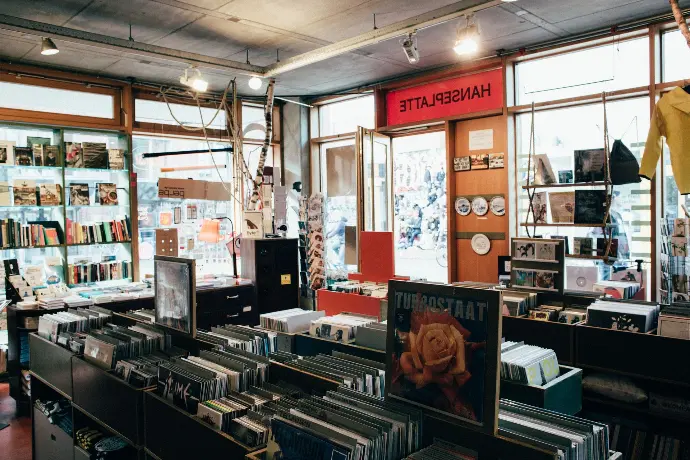 Hanseplatte. Der Multistore in Hamburg. Seit 2006 Jahren dort gelegen, wo sich Schanzen- und Karolinenviertel die tätowierte Gentrification-Hand reichen: direkt neben dem Alten Schlachthof am beliebten Lattenplatz, gegenüber also vom legendären KNUST.